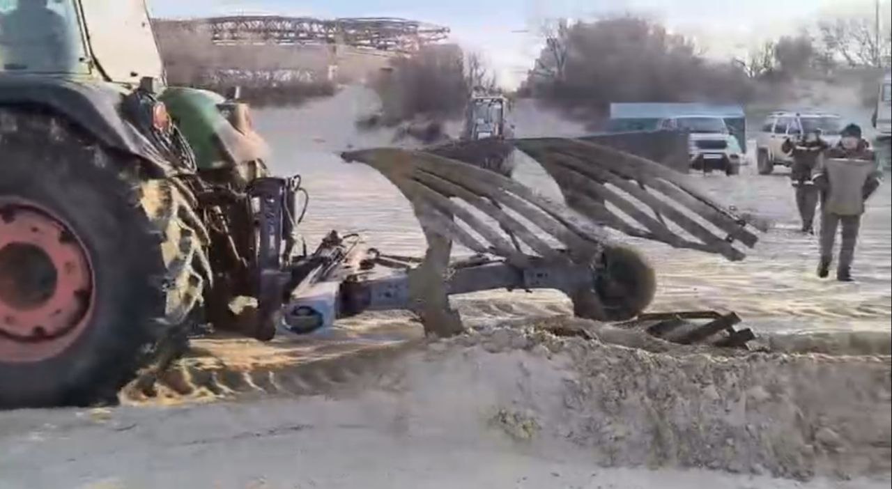 Поднятые трактором наверх пласты должны некоторое время просохнуть. После этого мазут складывают в мешки, сообщили в оперштабе Краснодарского края.