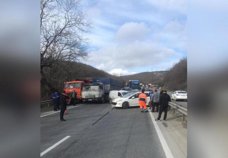 У Волчьих ворот столкнулось несколько грузовиков и легковых автомобилей