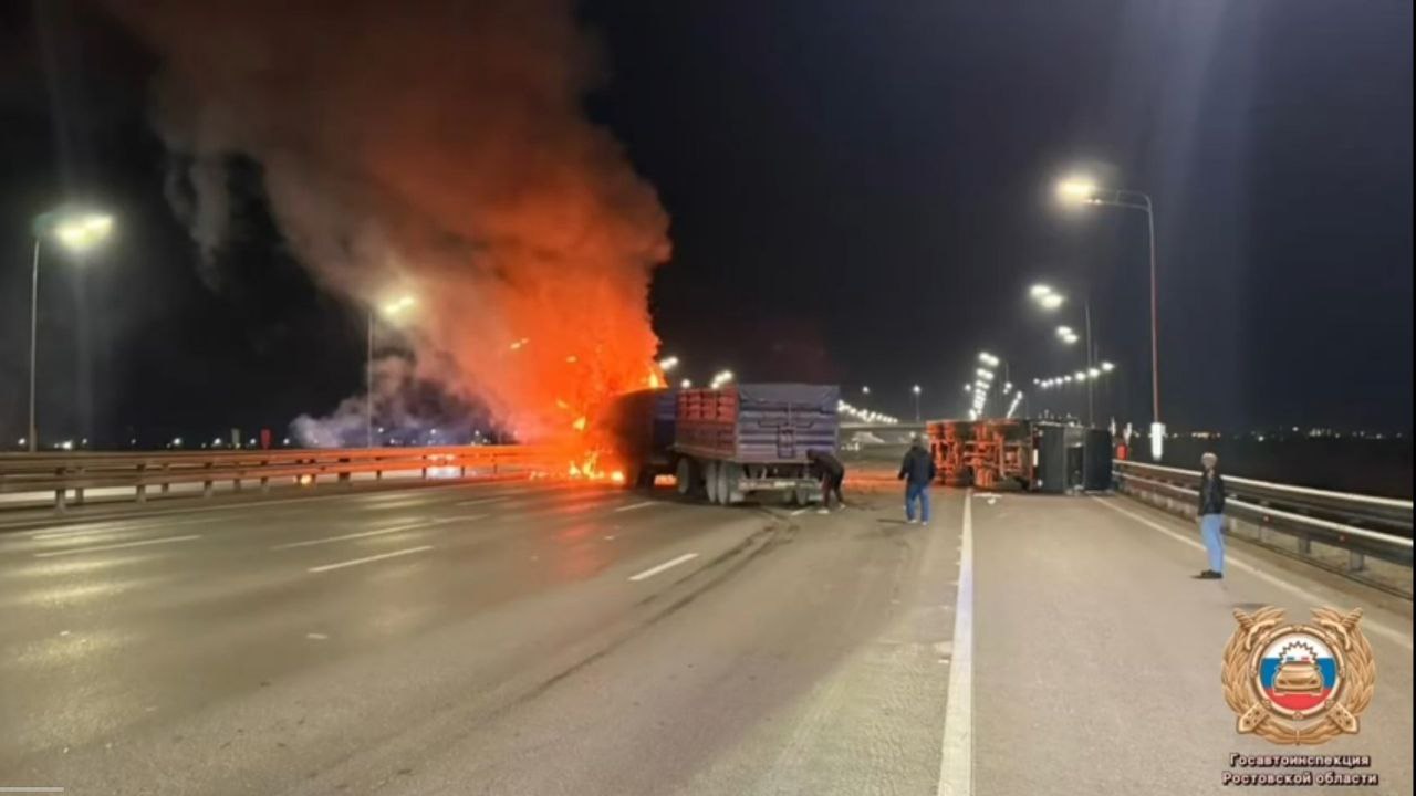 На подъезде к Ростову после столкновения двух КамАЗов начался пожар