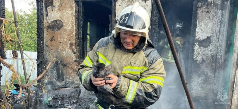 Хозяйка дома рассказала пожарным, что людей внутри не осталось, только животные. Спасатели вынесли из горящего строения трех карликовых кролика.