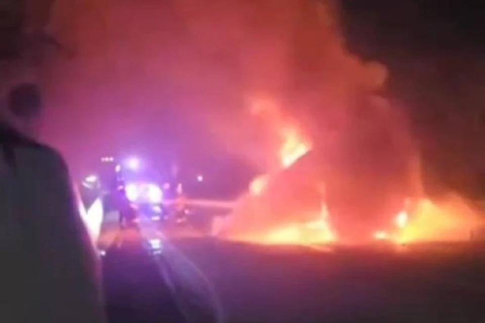 Инцидент произошел недалеко от Мамедовой Щели. Грузовик полыхал ярким пламенем, угрожая всем участникам движения.