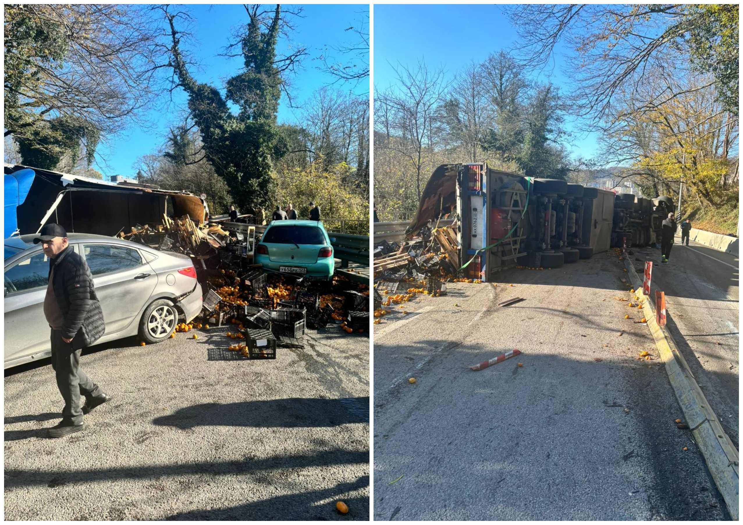 Во вторник, 3 декабря, на федеральной трассе в Сочи случилось почти предновогоднее ДТП. В районе Дагомыса на дорогу опрокинулась фура с мандаринами.