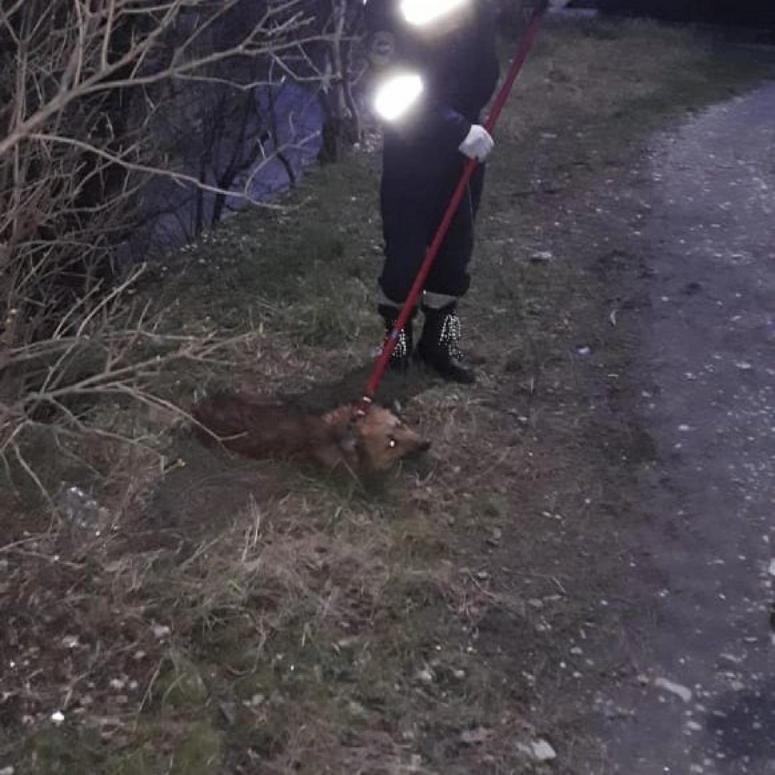 Спасателям пришлось применить удавку, чтобы достать пса из ямы. Но собака не оценила попытку спасения и укусила одного из сотрудников за палец, а потом убежала.