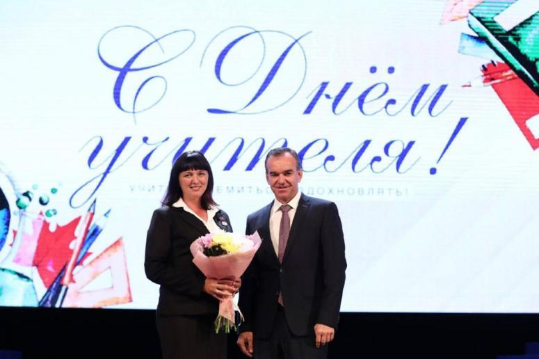 В преддверии праздника, 4 октября, в Краснодаре состоялось награждение выдающихся педагогов Кубани. Звания “Заслуженный учитель Краснодарского края”, почетные грамоты и благодарности получили 24 человека. Награды вручал Вениамин Кондратьев.
