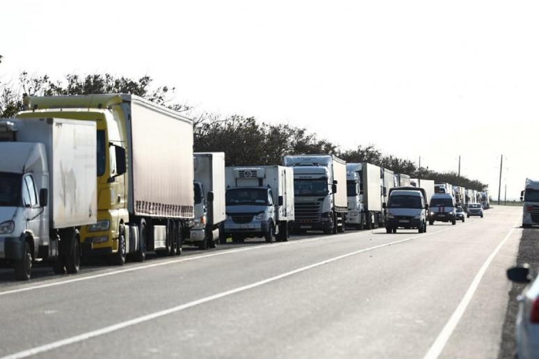 Среди ожидающих – в основном грузовики с продуктами питания и товарами первой необходимости. Водителям выдают пропуска для погрузки на паромы. На месте дежурят волонтеры, работает столовая, есть пункт обогрева. Остальные накопительные площадки пока ожидающих не принимают и находятся в резерве.