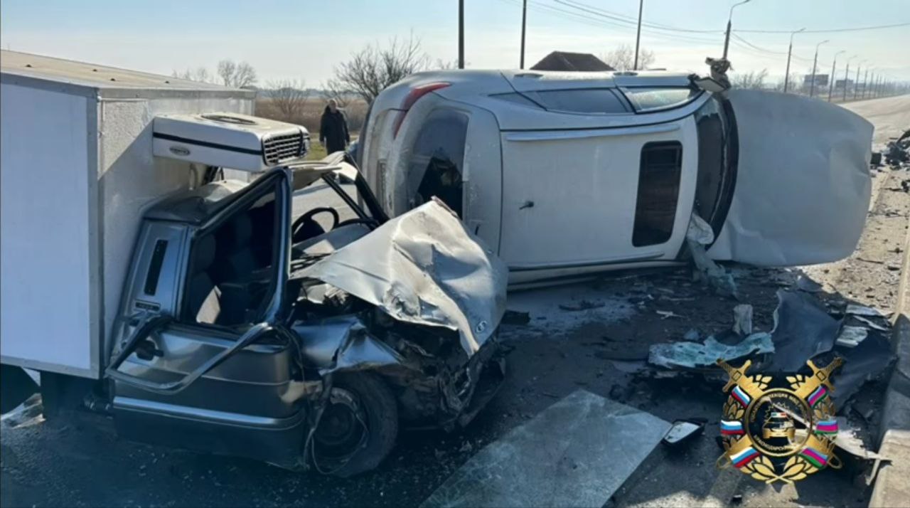 По информации полиции, водитель внедорожника Infinity по пути из Анапы в сторону Темрюка не выбрал безопасную скорость движения и врезался в идущий впереди в попутном направлении автомобиль Hyundai. От удара Infinity выбросило на встречную полосу движения, где она сначала врезалась в Ford Focus, а затем в мини-грузовик.