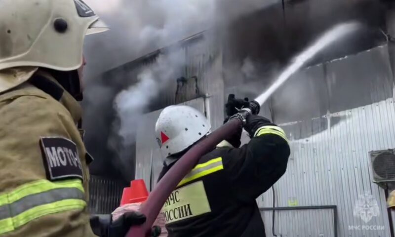 Огонь в порту Темрюка после падения обломком БПЛА распространился на площади 1,3 тыс. квадратных метров