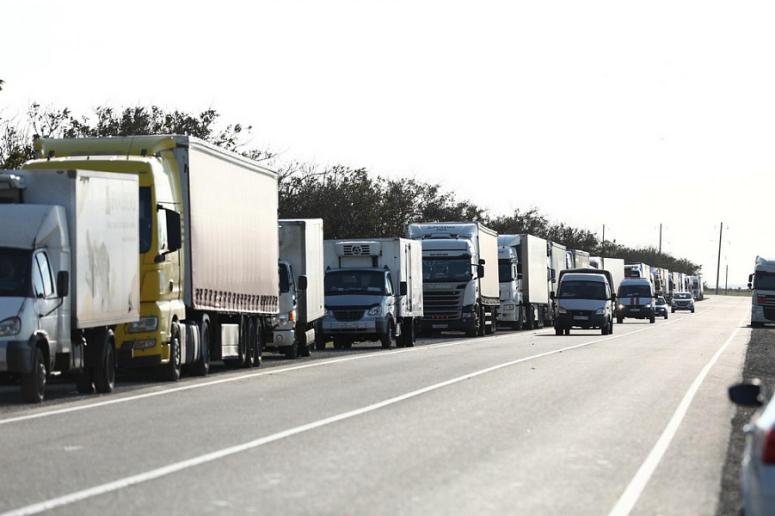 Очередь из грузовых автомобилей, ожидающих переправы через Керченский пролив, не уменьшается. Сейчас в ней насчитывается порядка тысячи машин. Водителей, приехавших на перехватывающие стоянки, регистрируют в специальной электронной очереди.