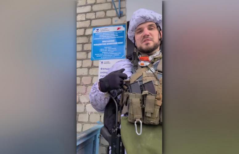 Денис Капустин на фоне здания фельдшерско-акушерского пункта в селе Любечане Брянской области 2 марта