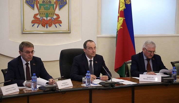В Заксобрании Краснодарского края прошло заседание, посвященное изменениям федерального законодательства. На встрече присутствовали председатель краевого парламента Юрий Бурлачко, сенатор РФ Алексей Кондратенко, депутаты Госдумы РФ, представляющие Кубань, депутаты ЗСК, руководители фракций в краевом парламенте, председатели представительных органов местного самоуправления края.