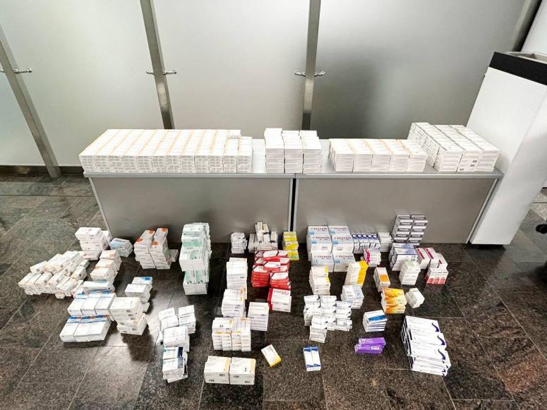 В ходе досмотра в двух чемоданах обнаружили 2025 упаковок лекарств: блистеры с таблетками, капсулы, ампулы, флаконы.