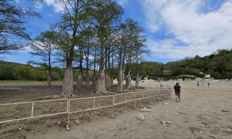 Памятник природы — Кипарисовое озеро — в очередной раз переживает не лучшие времена: местные жители рассказывают, что, хотя деревья и покрылись зеленью, земля под ними пересохла и потрескалась.