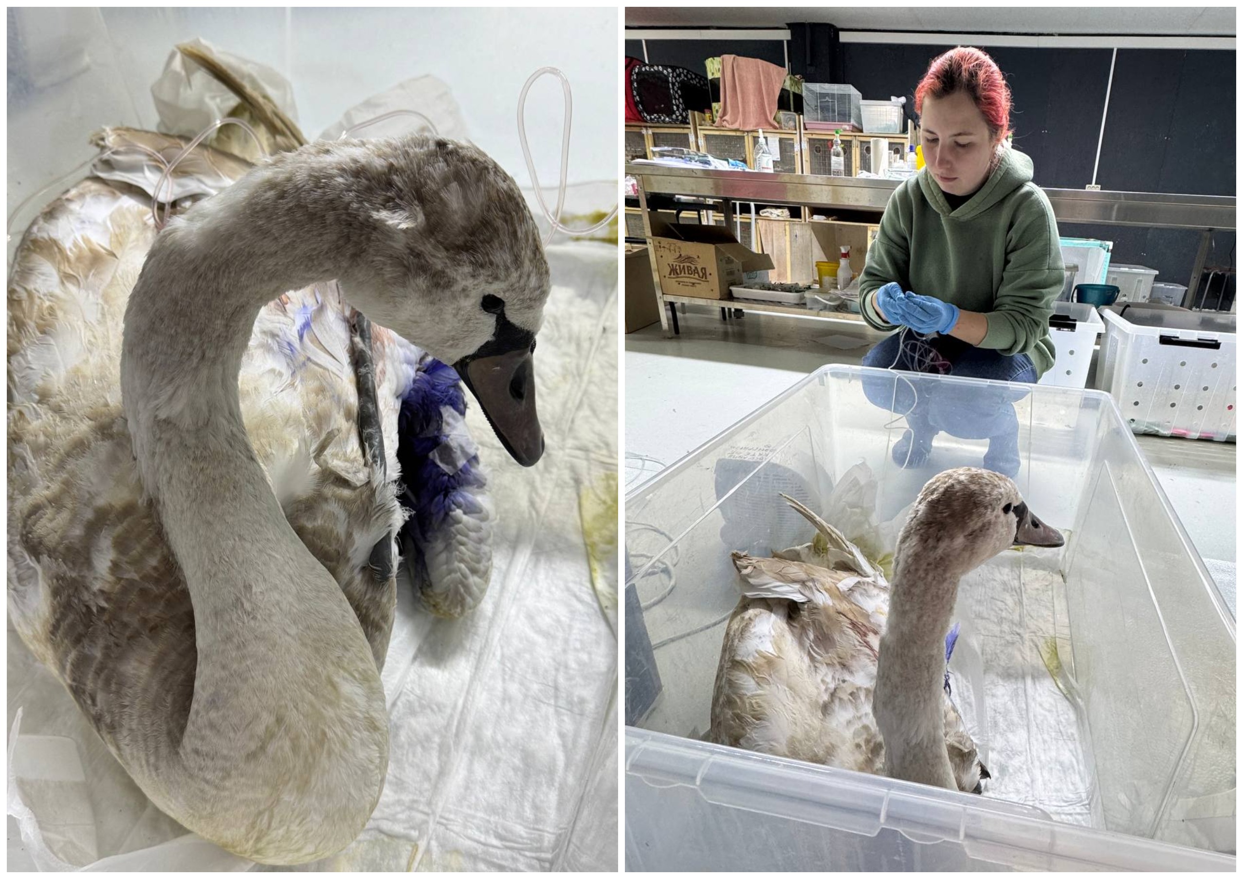 У выжившего лебедя обнаружили три перелома крыла. Ему уже провели операцию и стабилизировали состояние. Но на фоне ранений начали возникать другие проблемы со здоровьем.