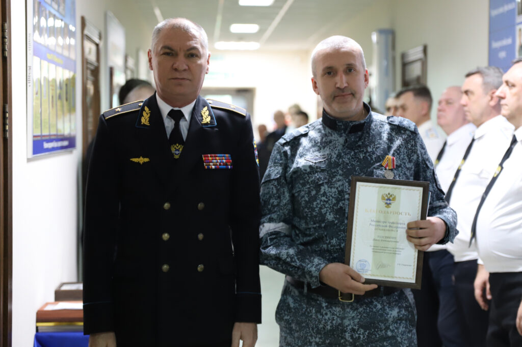 С руководителем Юрием Тхазаплижевым - начальник смены команды «Морской порт» Сочинского отряда Павел Толстихин, который  награжден благодарностью Министра транспорта РФ в 2025 году,  участник СВО, выполнявший боевые задачи с сентября 2022 года по март 2023-го и удостоенный за проявленный героизм медали «За храбрость» второй степени