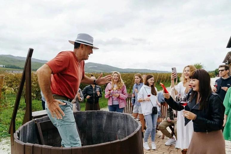 На празднике гости смогут самостоятельно собрать ящики спелых ягод. После этого сборщиков на деревенском тракторе отвезут на винодельню, где желающие смогут добыть виноградный сок старым способом — топчась по ягодам в чане.