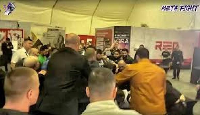На пресс-конференции, которая проходила на Красной Поляне после турнира по ММА «Наше дело 83», началась потасовка между двумя бойцами, переросшая в массовую драку.