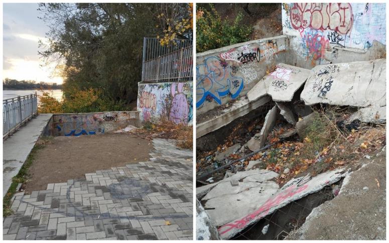 После возвращения из "Сколково", где проходила программа “Гостеприимные города”, мэр Краснодара Евгений Наумов обратил внимание на обстановку на улице Рождественская Набережная в краевой столице. Часть прогулочной зоны там обрушилась, плитка исчезла, бетонные стены изрисованы граффити.