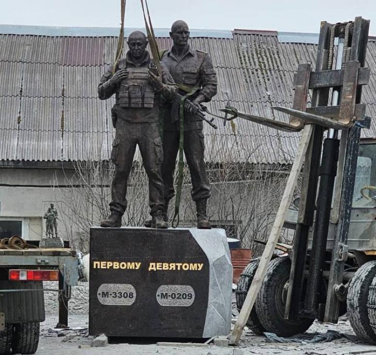 На опубликованной фотографии видно две ростовые фигуры - Пригожина и Уткина, а на постаменте имеется изображение их личных жетонов с номерами М-3308 и М-0209.