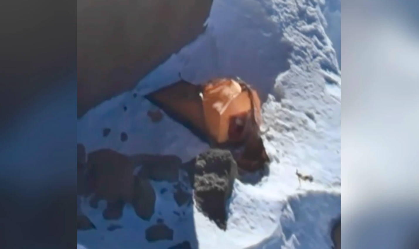 Наталья Наговицина машет рукой из палатки у пика Победы, съёмка с дрона. Видео: Михаил Наговицин / vk.com