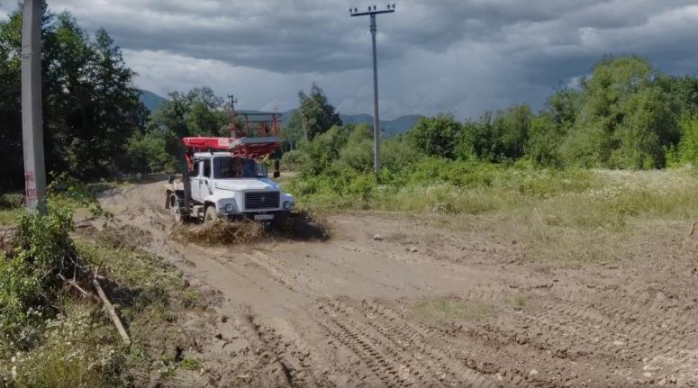 Работы осложняются размытыми дорогами, критически высоким уровнем рек, локальными подтоплениями, отсутствием проезда на отдельных участках автотрасс. Тем не менее над восстановлением электроснабжения сейчас работают 12 бригад — около 40 специалистов и 14 спецмашин. Ожидается приезд еще 10 бригад.