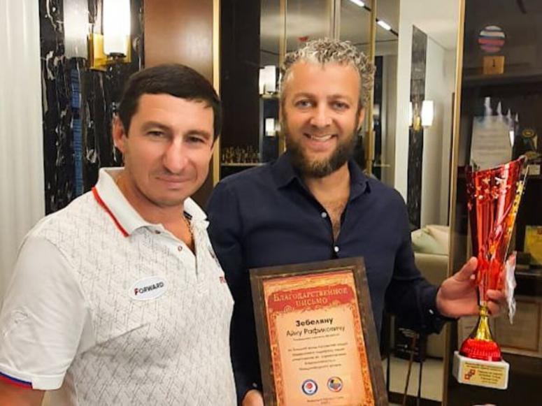 Каратисты из Сочи поблагодарили Айка Зебеляна за поддержку и подарили памятный кубок.