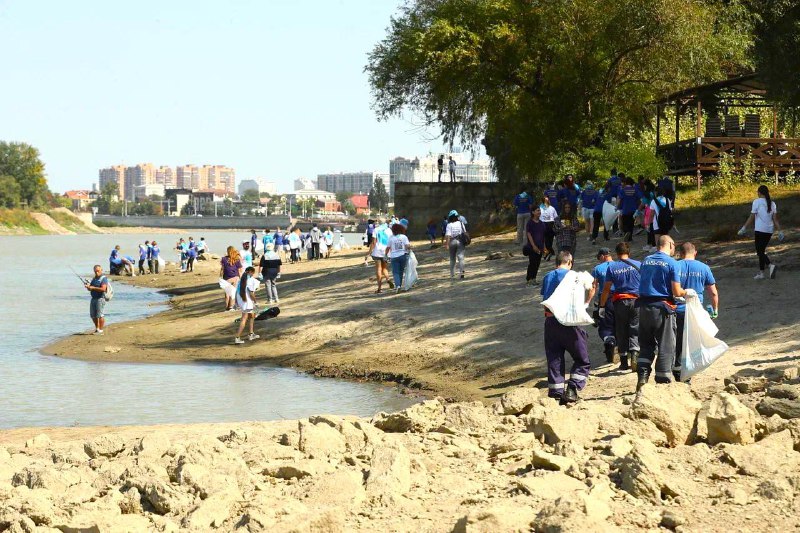 Западный округ стал местом проведения Всероссийской волонтёрской акции «Вода России». На берег реки Кубани в парке им. 30-летия Победы вышли более 500 краснодарцев, чтобы собрать мусор.