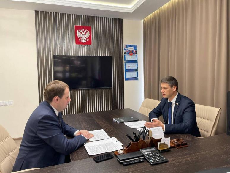 Депутат Государственной думы Сергей Алтухов в рамках региональной недели провел встречу с руководителем краевого департамента промышленной политики Иваном Куликовым. Предметом встречи стал поиск путей решения проблем промышленных предприятий, попавших под санкции западных стран.