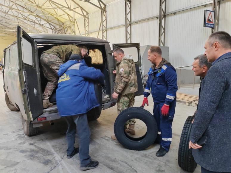 Сергей Косяников передал в зону СВО зимние шины для автомобилей и мешки для блиндажей