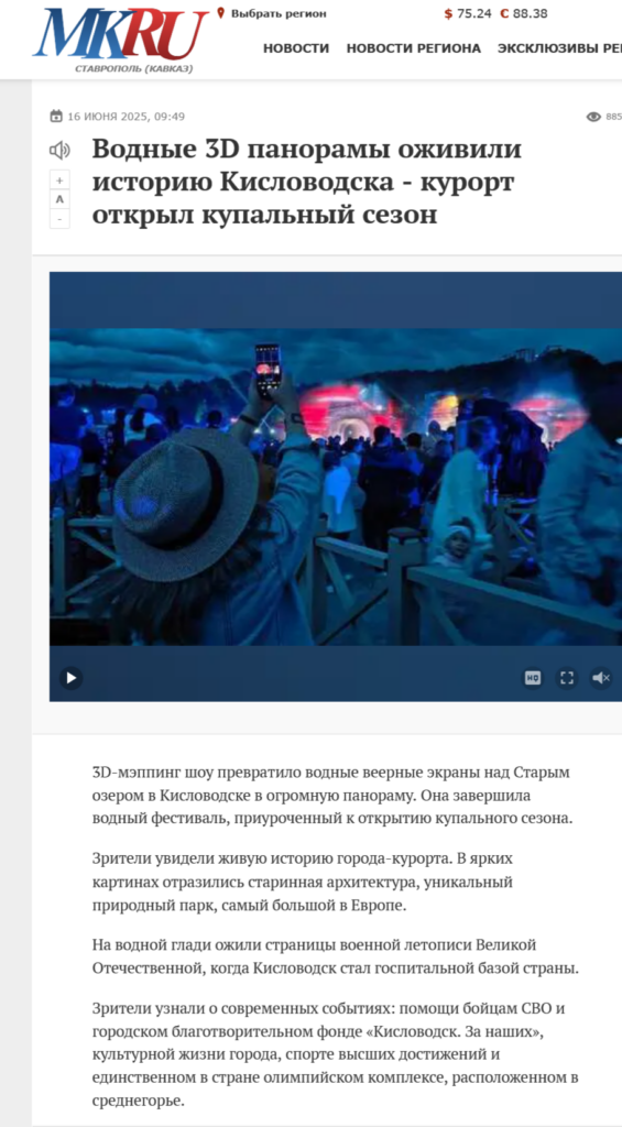 28 апреля 2025 года «Энерджи» заключила с администрацией Кисловодска контракт на проведение 3D-mapping шоу «Живая вода». Казалось бы, обычная рабочая история.
