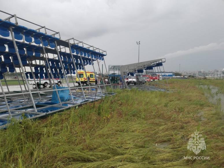 Напомним, трагедия произошла вечером 30 мая во время детского футбольного матча. Трибуны опрокинулись из-за сильного порыва ветра. Под ними в это время прятались от ливня игроки и зрители. От полученных травм на месте скончалась женщина — мать одного из спортсменов. В критическом состоянии в Москву сегодня увезли 12-летнего футболиста. Ему провели серьезные операции, в том числе трепанацию черепа. В больнице в состоянии разной степени тяжести остаются еще 18 детей и семеро взрослых. Всего в результате несчастного случая пострадали 36 человек.