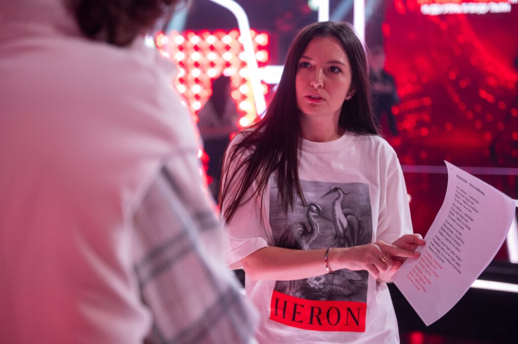 Еще я придумываю креатив – наполнение внутри проекта, выбираю звёзд, которые будут в нем участвовать. Конечно, я делаю это все не одна, а со своей командой. Я нахожусь на должности креативного продюсера, но все мое творчество – это мой коллектив. Мы с ним единое целое.