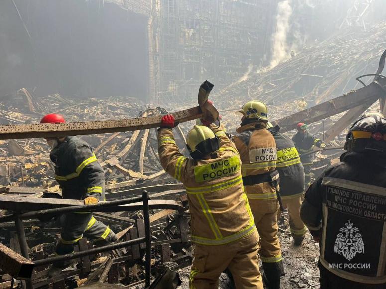 Председатель Следственного комитета Александр Бастрыкин 25 марта заявил, что террористы пробыли в здании 13 минут и подожгли его. По словам Бастрыкина, из общего числа погибших – на тот момент их насчитывалось 139 человек – от огнестрельных ранений скончались 40 человек, от сочетания огнестрельных и колото-резаных ран – два человека, в результате пожара от воздействия огня и дыма – 45 человек.