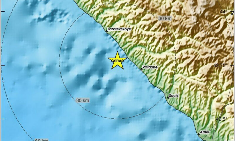 Подземные толчки около 10 часов утра 22 июля зафиксировали сейсмологические службы в 32 километрах к северо-западу от Сочи и 16 километрах к юго-востоку от Лазаревского.