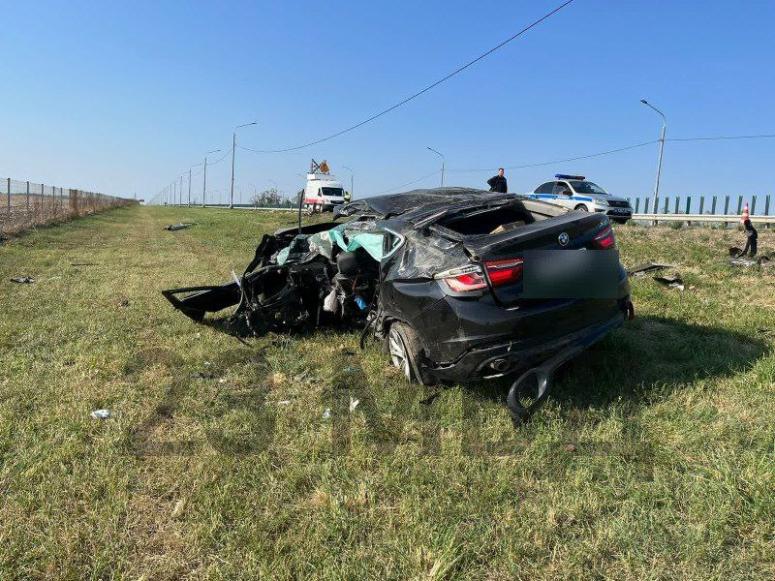 У BMW в Кореновском районе Кубани взорвалось колесо, машина вылетела с трассы