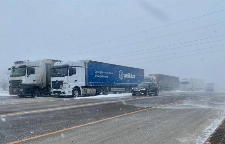 Сложная ситуация складывается в районе перевала Волчьи ворота. Фуры буксуют при подъеме в гору. С гололедом борется дорожная техника.