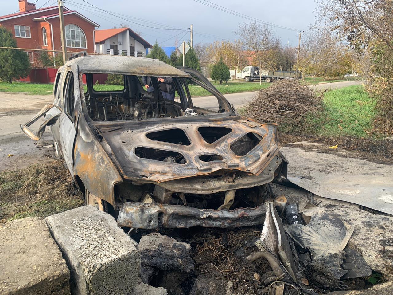 Маршрут угонщика пролегал через село Цибанобалка, где ситуация приняла опасный оборот. Не справившись с управлением, он врезался в железобетонный забор. Удар оказался настолько сильным, что автомобиль загорелся. Пламя стремительно охватило машину, а сам водитель получил ожоги — чудом ему удалось выбраться из пылающего авто.