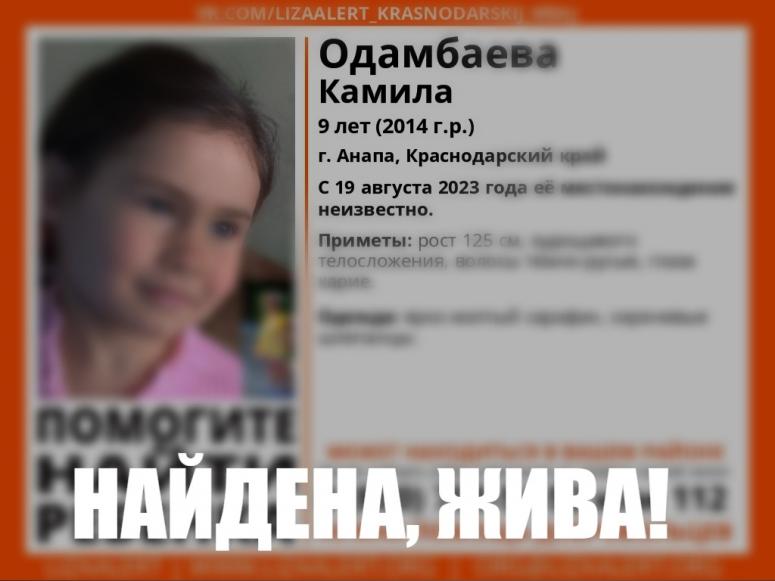 Камилу Одамбаеву нашли живой в станице Анапской. Подробнее можно узнать здесь.