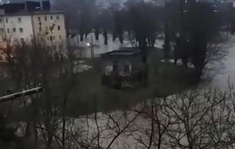 Сегодня, 4 января, в Архипо-Осиповке после залпового дождя вышла из берегов река Вулан. Повышению уровня воды способствовали не только обильные осадки, но и шквалистый ветер, дующий со стороны моря. Из-за него вода не могла уйти.
