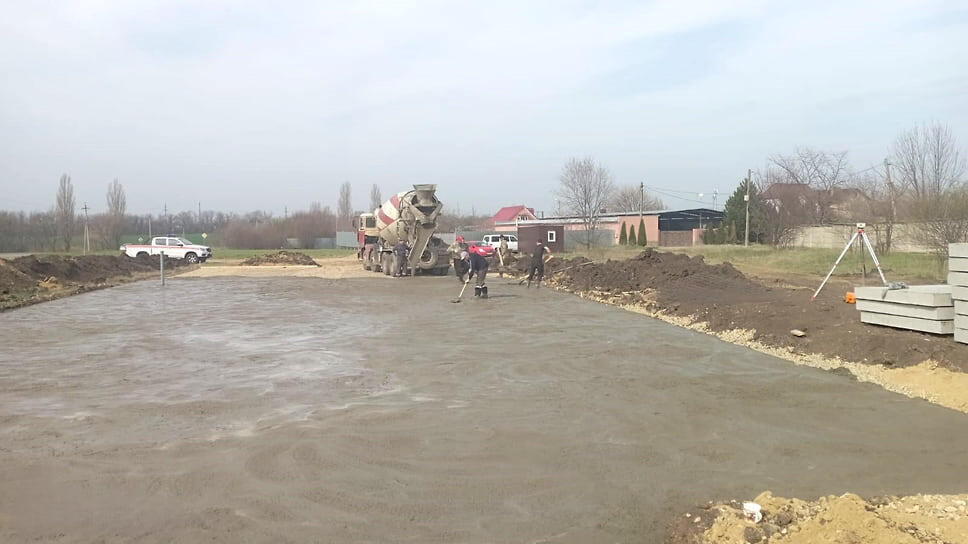 На строительной площадке уже активно ведутся работы: залито бетонное основание и началась доставка плит для фундамента.