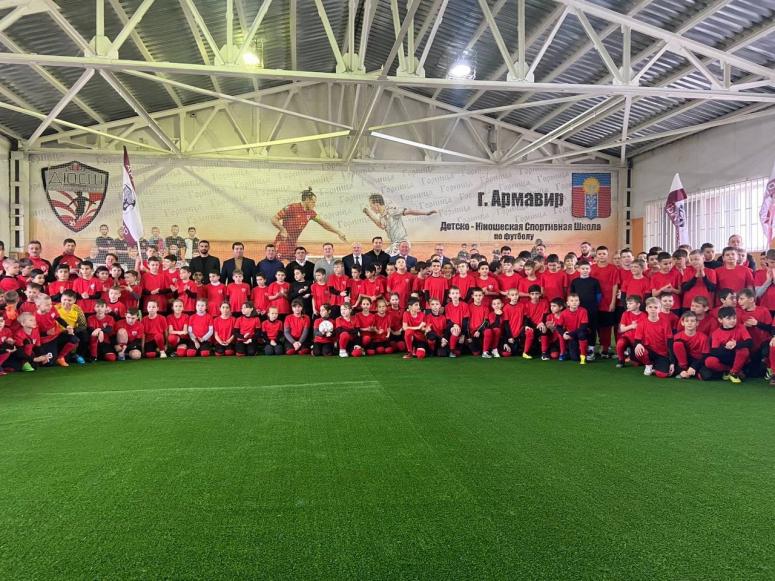 В Армавире завершили ремонт в спортивной школе по футболу. Председатель комитета ЗСК по физкультуре и спорту Сергей Носов, его первый заместитель Александр Поголов, первый заместитель финансово-бюджетного комитета Алексей Титов и секретарь комитета по аграрным вопросам Антон Толстопятов присутствовали на торжественном открытии спортзала после реконструкции.