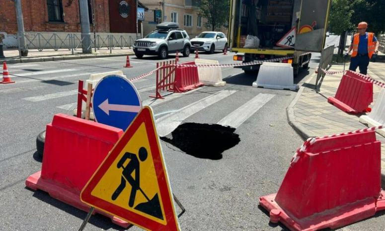 В краевом центре специалисты организации «Росводоканал Краснодар» ликвидируют провал на пересечении улиц Ленина и Октябрьской в исторической части города.