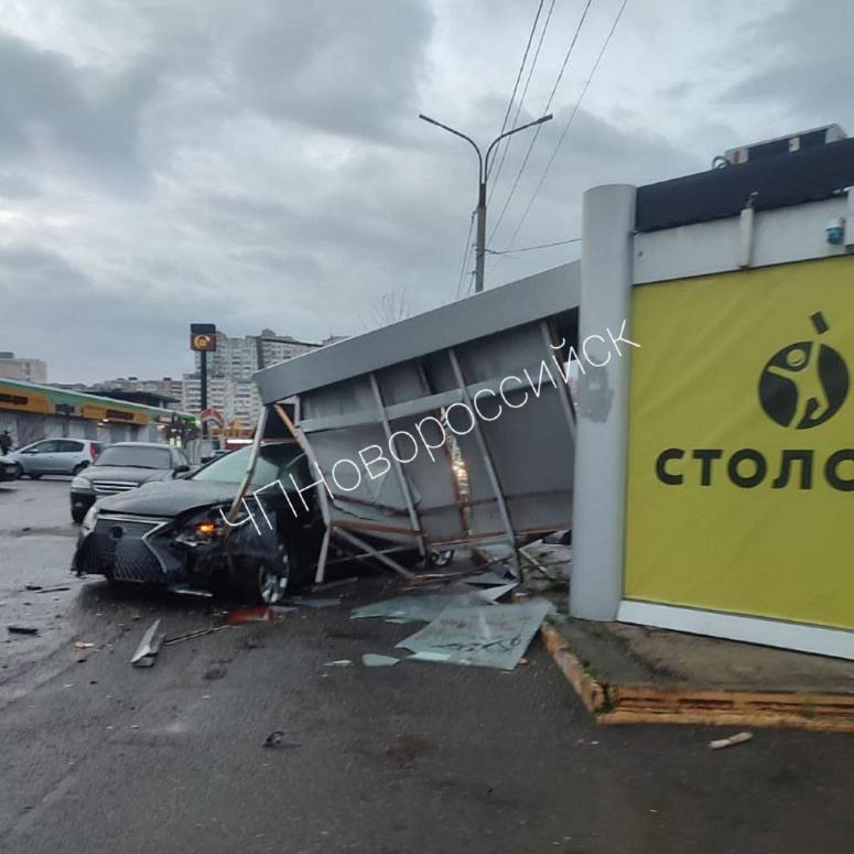 Утром 6 декабря автомобиль Lexus недалеко от торгового центра «Южный» врезался в остановку общественного транспорта.