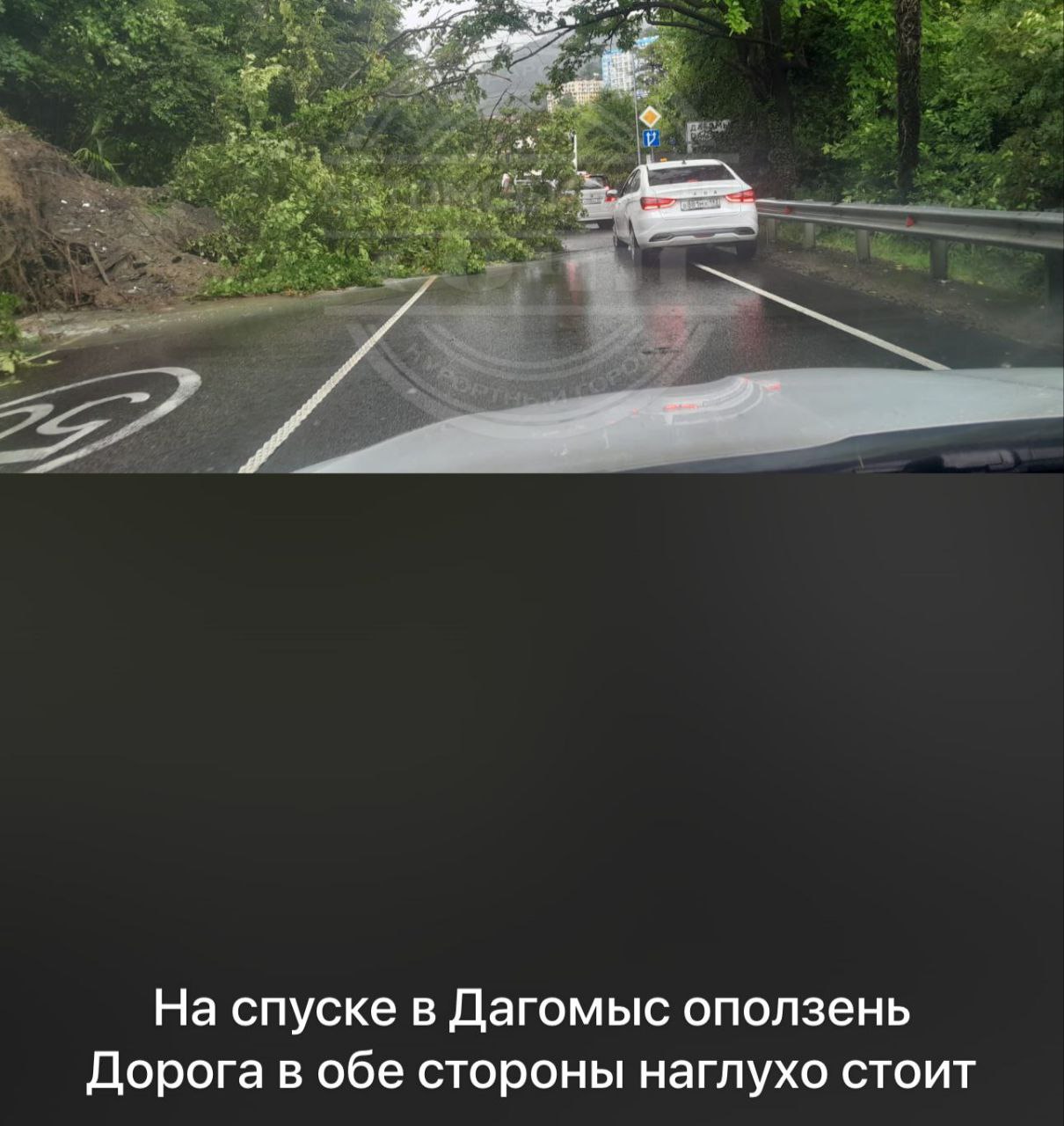 По словам жителей курорта, на участке дороги в районе Яблочной речки вода сносит автомобили, во все стороны летят огромные валуны.
