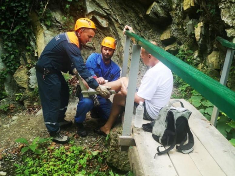 Вечером спасателям Лазаревского подразделения пришлось выехать на помощь туристу в Свирское ущелье. 46-летний житель Ярославской области пошел гулять к водопадам и, поднимаясь по мокрой тропе, поскользнулся и упал. Он сильно травмировал ногу и не мог дальше передвигаться. Сотрудники МЧС и городской службы спасения на носилках транспортировали его из ущелья к автодороге, где их уже ожидали врачи "скорой помощи", сообщает пресс-служба ЮРПСО в своем Telegram-канале.
