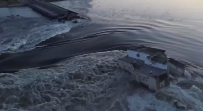 Из Каховского водохранилища идёт неконтролируемый сброс воды ниже по течению Днепра. На подконтрольной Украине части Херсонской области по правому берегу Днепра объявлена эвакуация, в том числе в Херсоне. Ряд населённых пунктов там, по информации властей, уже частично или полностью затоплен. По словам главы украинской Херсонской областной военной администрации Александра Прокудина, уровень воды достигнет критических отметок через 5 часов, то есть к полудню. Он также уточнил, что в зоне затопления 16 тысяч человек.
