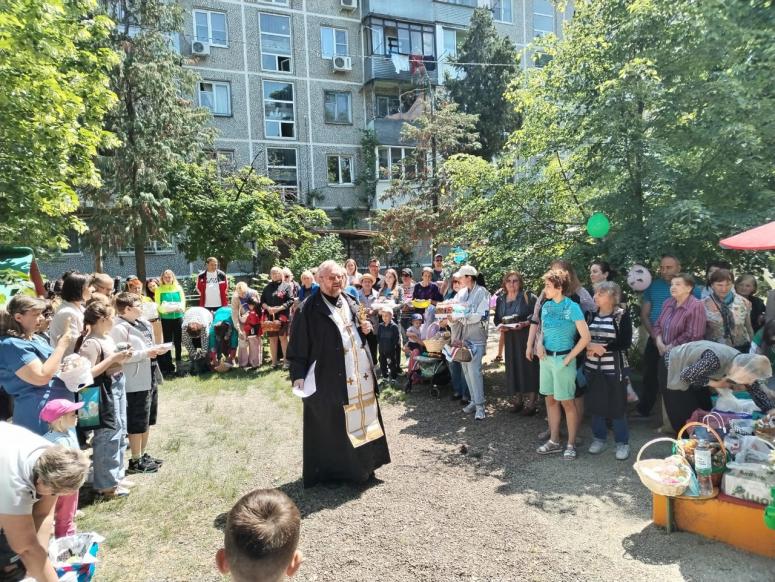 В субботу, 4 мая, в канун Светлой Пасхи во дворе дома № 59 по улице Гагарина состоялось традиционное мероприятие по освещению куличей и яиц. Его проводят с 2011 года по инициативе депутата городской думы Зорика Садояна.