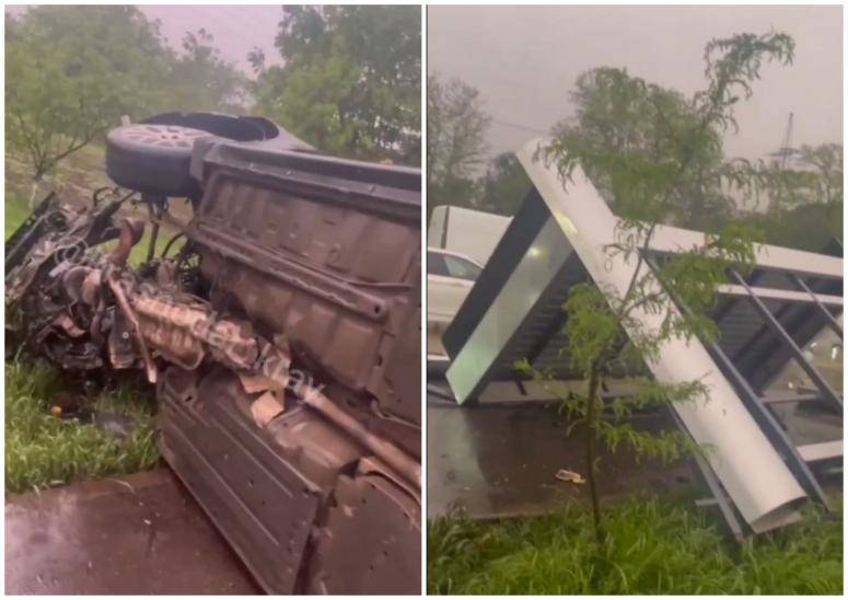 Вечером 8 мая в Краснодаре на улице Калинина произошло ДТП. Там иномарка въехала в остановку общественного транспорта. От удара остановочный павильон накренился.