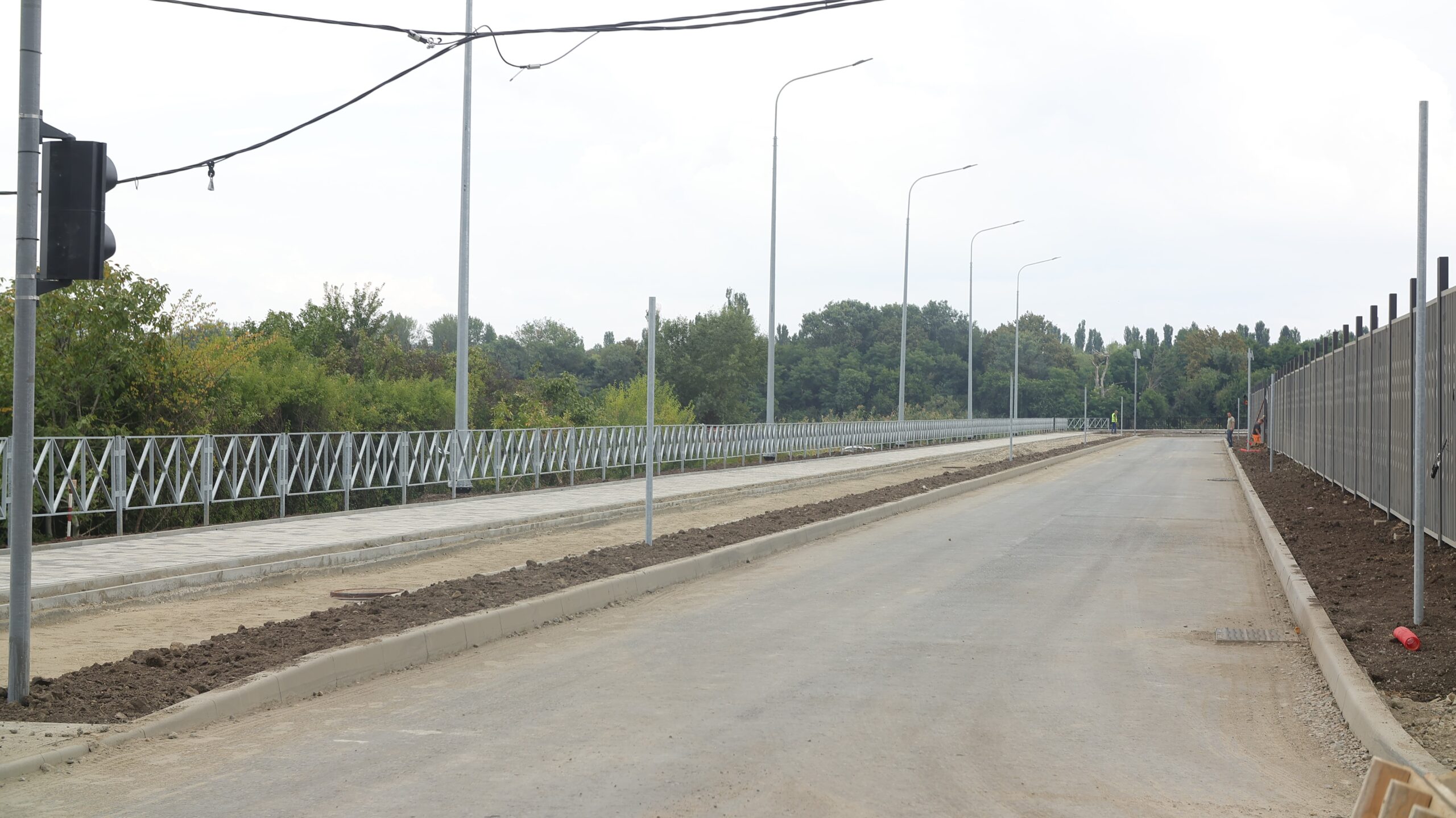 В данный момент на объекте укладывают асфальт, тротуарную плитку, устанавливают бордюры и систему освещения, обустраивают велосипедные дорожки. Чуть позднее для безопасности дорожного движения там предусмотрят светофоры, нанесут разметку и организуют почти 150 парковочных мест, включая места для автобусов.