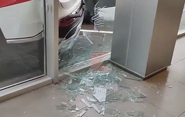 В Краснодаре иномарка влетела в окно автосалона после столкновения с фурой