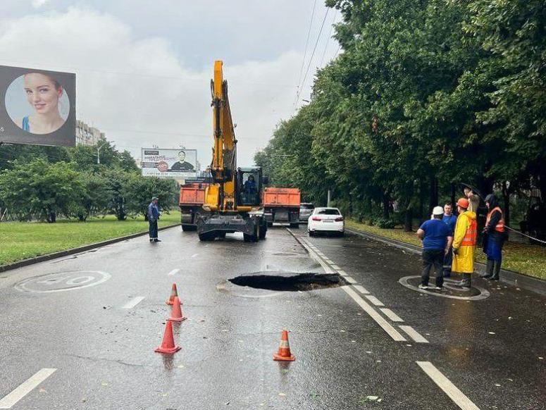 ​В Краснодаре из-за провалившейся дороги ограничили движение машин и изменили маршруты общественного транспорта на улице Тургенева